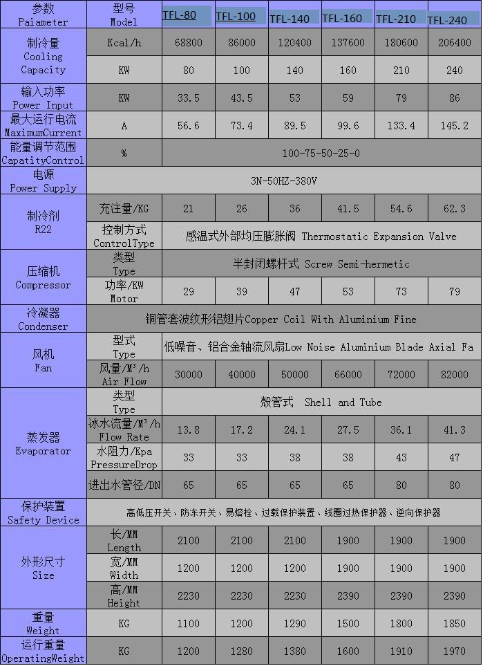 trolled ±2℃名義制冷量是依據(jù)冰水入口溫度12℃,出口溫度7℃,環(huán)境溫度35℃得出。
