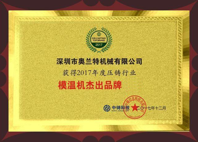 一年一度的壓鑄行業(yè)模溫機(jī)模溫機(jī)杰出品牌評選經(jīng)過兩個(gè)多月結(jié)束啦,深圳奧蘭特機(jī)械壓鑄模溫機(jī)獲得壓鑄模溫機(jī)杰出品牌之一。奧蘭特模溫機(jī)在2016年也曾獲得品牌。